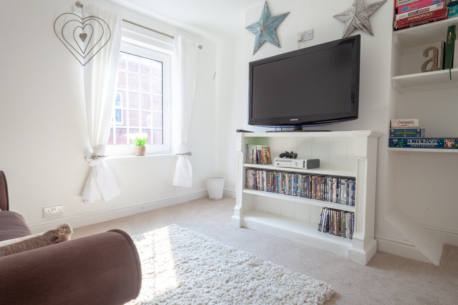 Comfy sofa, 40inch T.V, X box 360 and games, board games, books & DVDs.